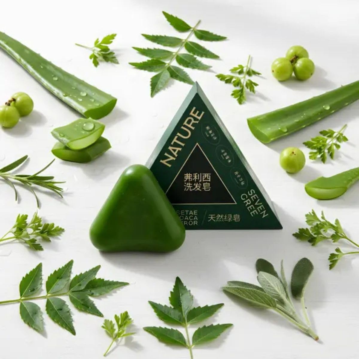 1Pack Nature Triangle Shampoo Bar, Nature Seven Green Soap Shampoo, Natural Usman Grass Hair Shampoo Bar for Women & Men, Solid Shampoo and Conditioner Bars for All Hair Types