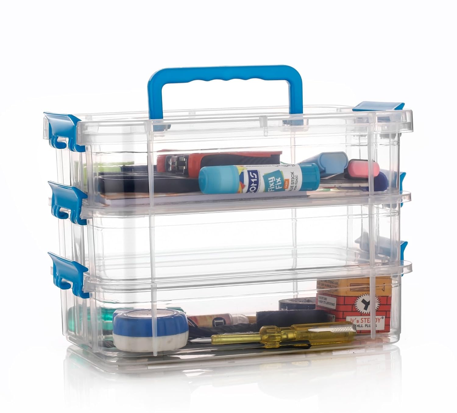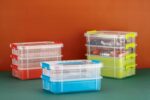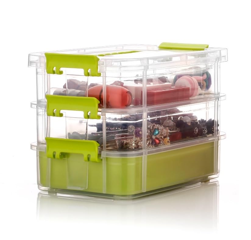 2 Layer Plastic Storage Containers with Lids – Detachable Multi-Utility Craft Organizer, Portable Storage Bin for Arts & Crafts, Sewing, Makeup & Office Supplies (Multicolor)