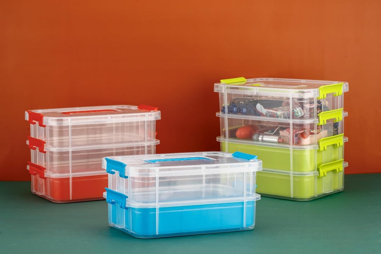 - [Stackable & Space-Saving]: Features a recessed lid for stable stacking, and the latch locks ensure each layer stays securely in place. Stack multiple bins together to save space and stay organized.