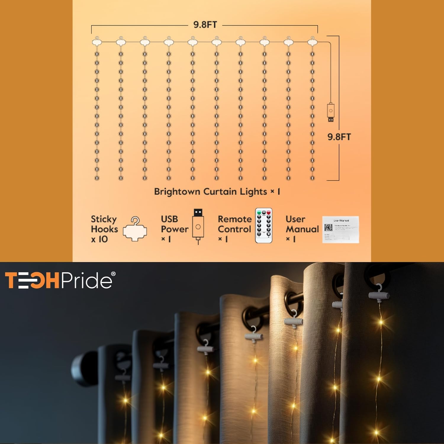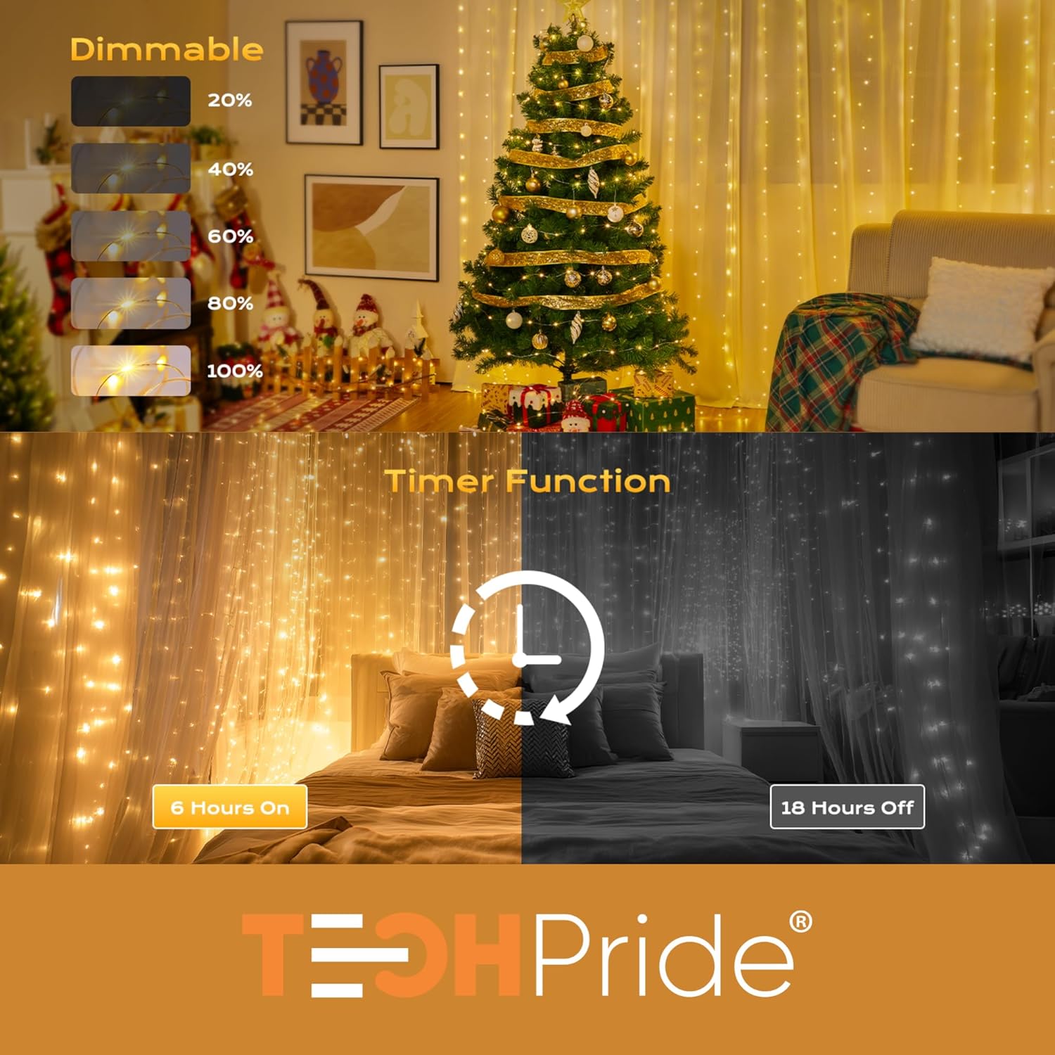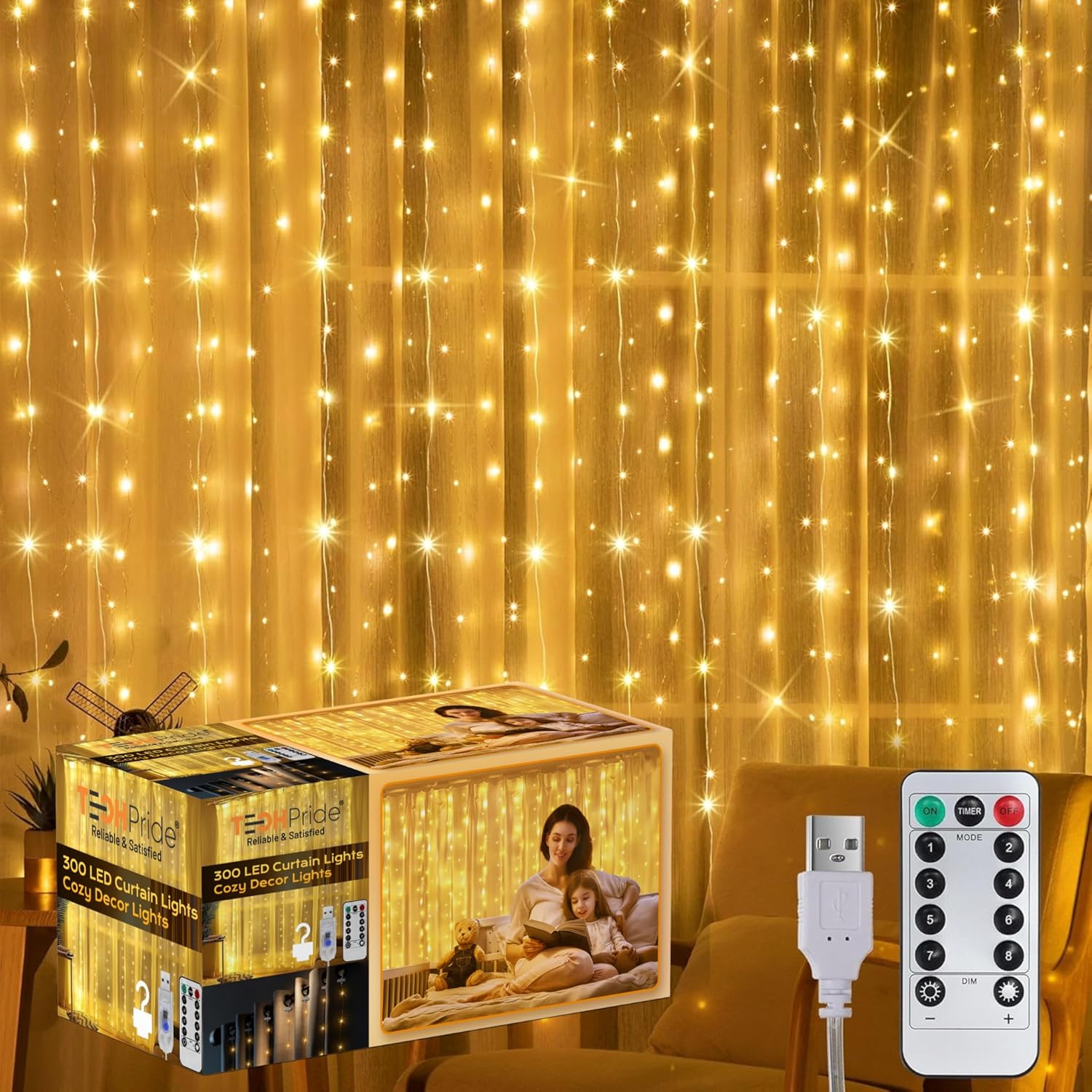 - 300 Brilliant Warm White LEDs: This high-density curtain design features 300 LEDs that are exquisitely distributed among the strings to cover the entire backdrop. Perfect for photo backdrops, doors, windows, balconies, and walls.