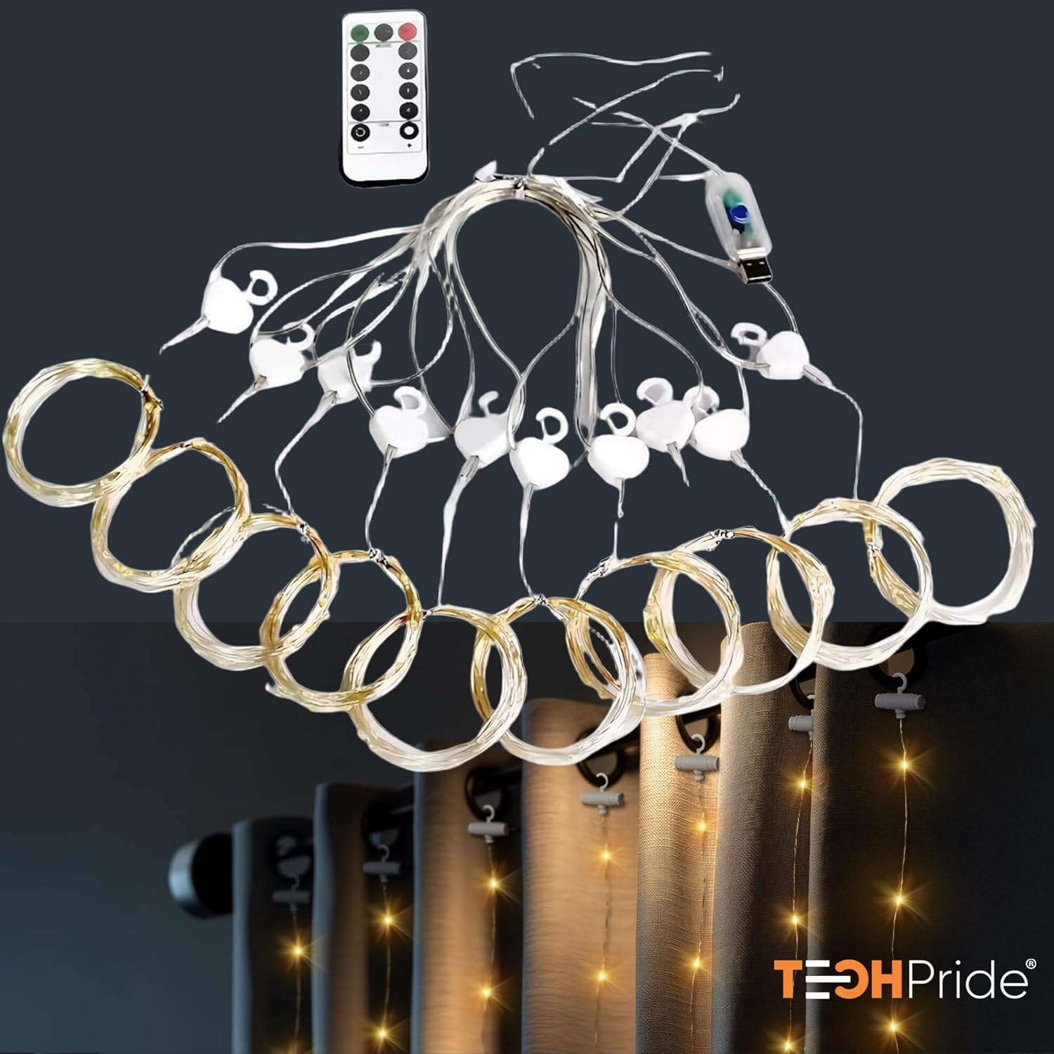 300 LED Curtain String Light | Warm White Fairy Lights with Plastic Hooks & Remote | 8 Lighting Modes | Indoor Outdoor Decoration Lights for Diwali, Wedding, Wall, Balcony, Party, Home Décor