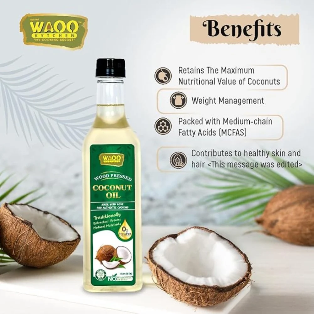 - Waoo Kytchen 1 Ltr Wood Pressed Coconut Oil – Pure, Natural, & Nutrient-Rich | No Chemicals or Preservatives | Supports Heart Health & Boosts Immunity | For Skin & Hair Care