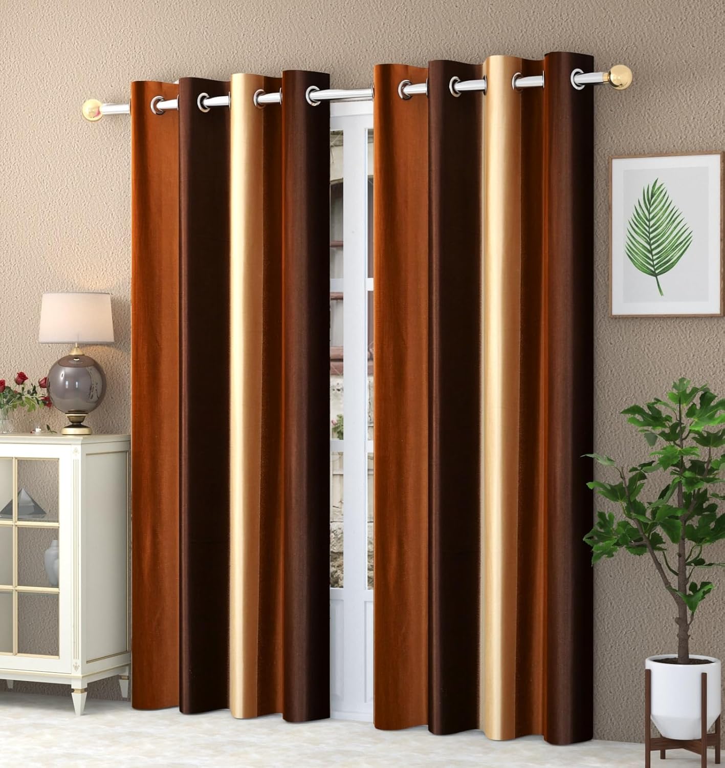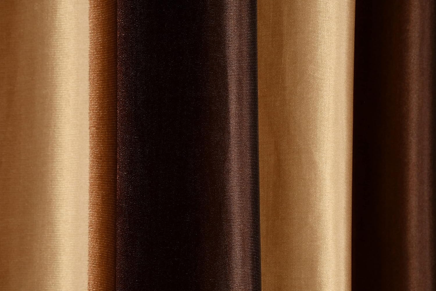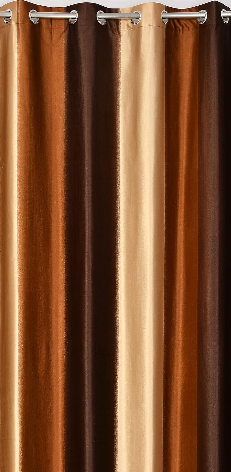 Abstract Long Crush Stripped Eyelet Polyester Curtains – 2 Piece (Brown, Window_5 Feet)