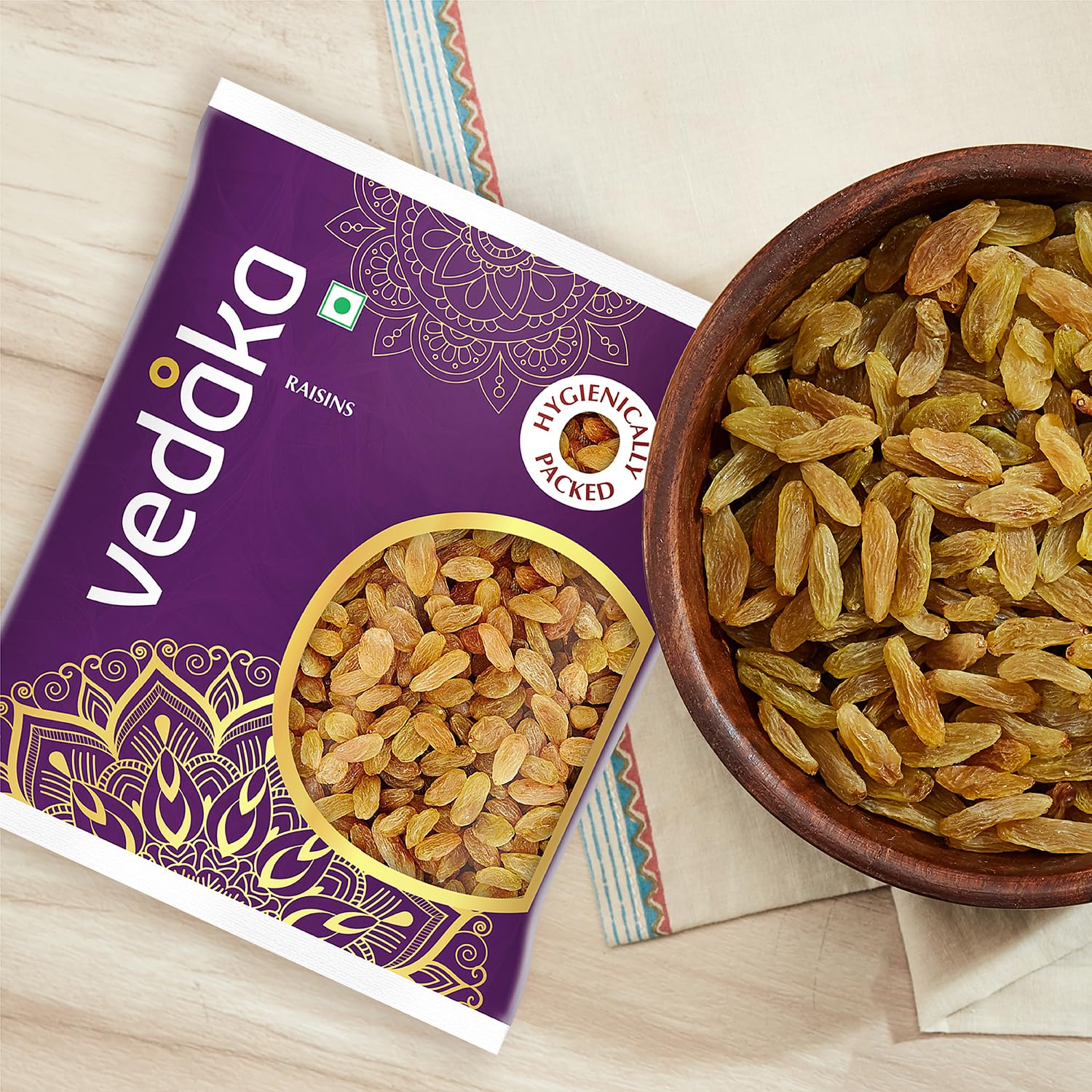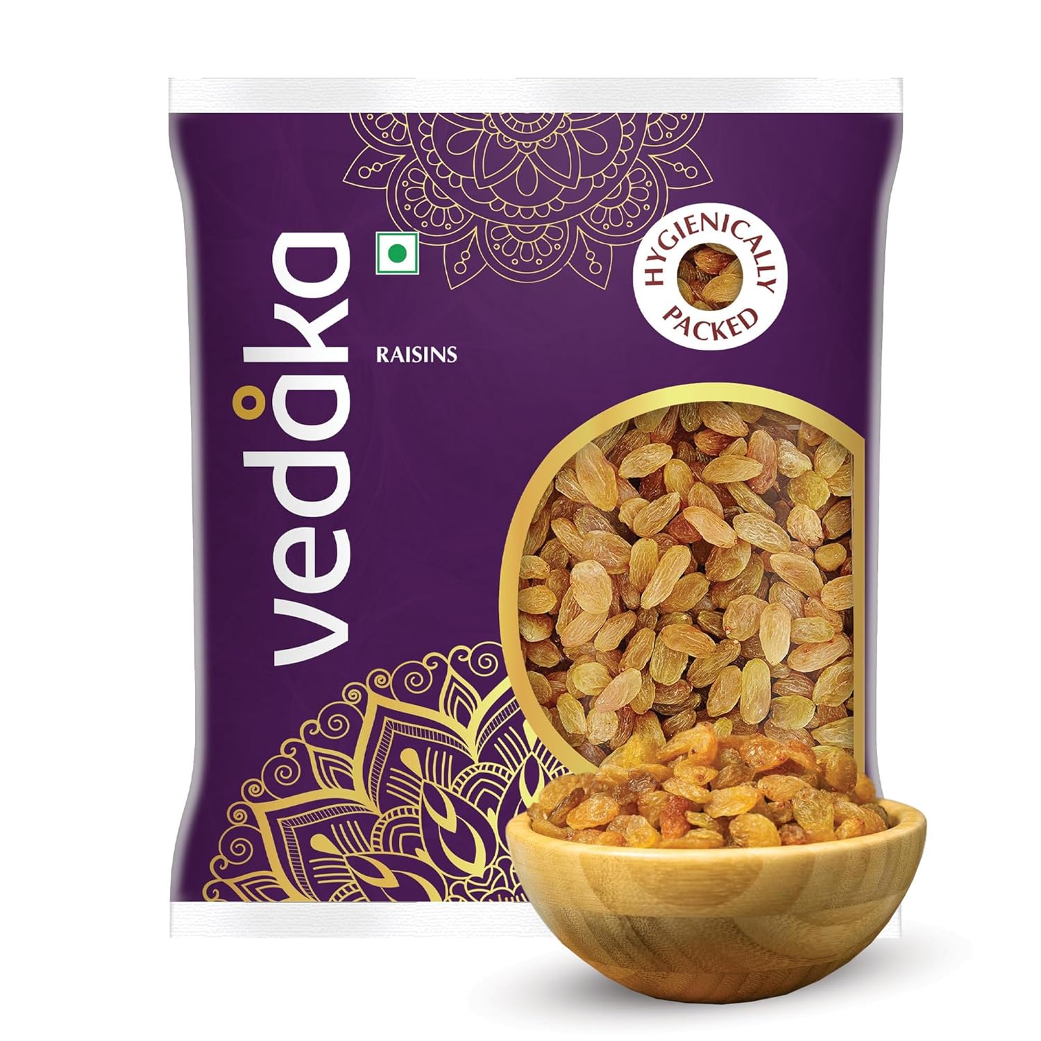 Amazon Brand – Vedaka Raisins 500G | Kismish | Dried Grapes | Sweet Fruity Taste And Soft Chewy Texture | Natural Source Of Antioxidants, Potassium & Fiber | Healthy Snack