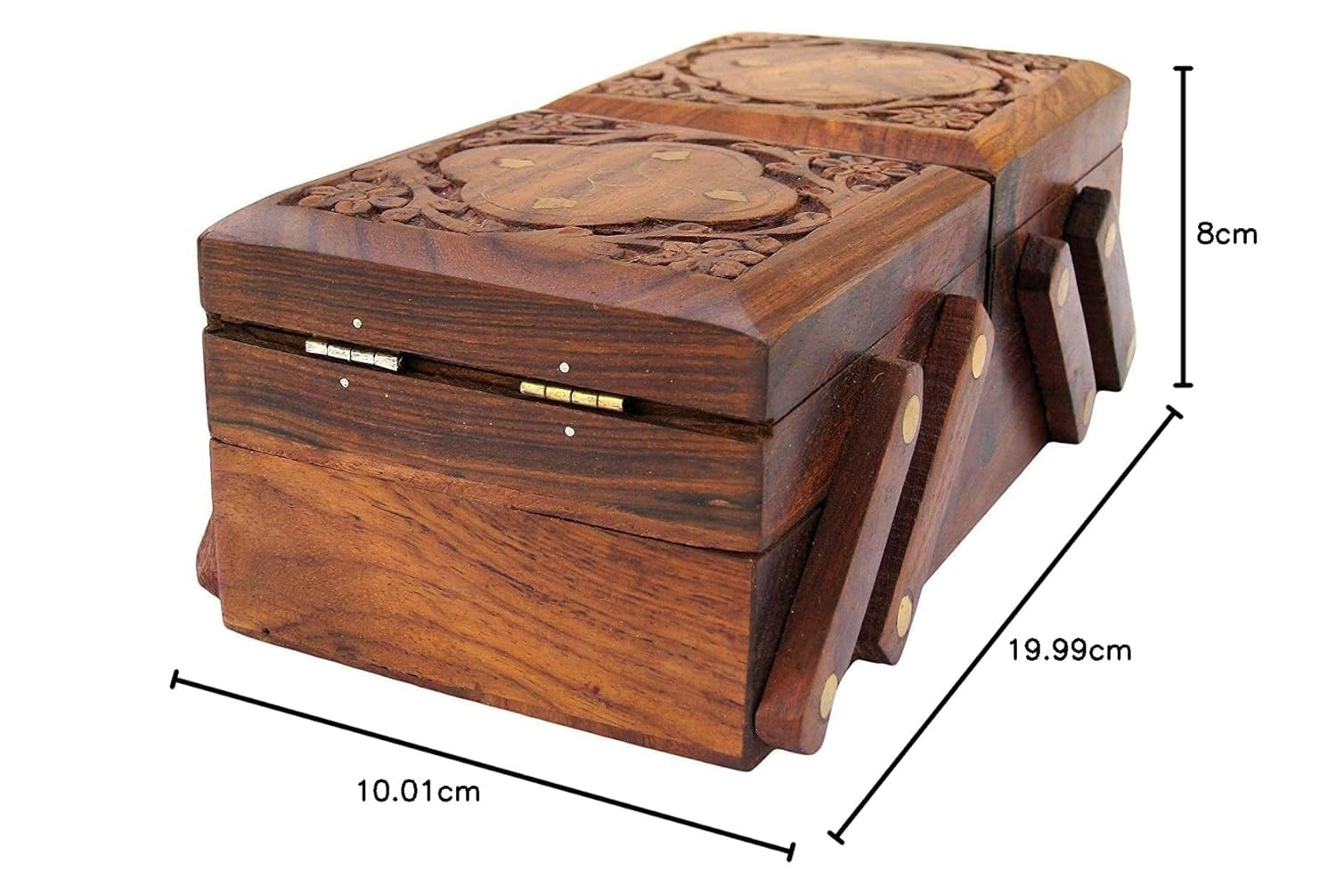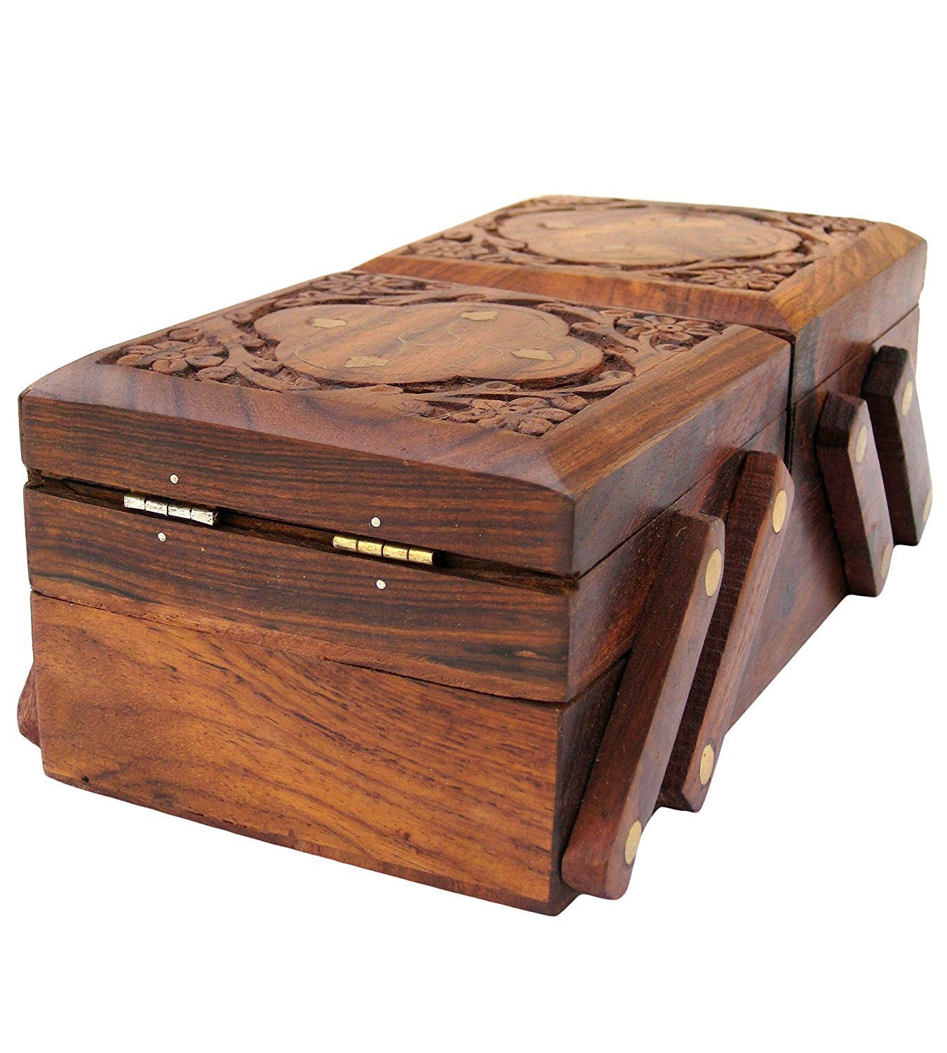 Craftland wooden Jewellery Box (Brass n Carving) for Women/girls Flip Flap Handmade Gift, 8 Inches