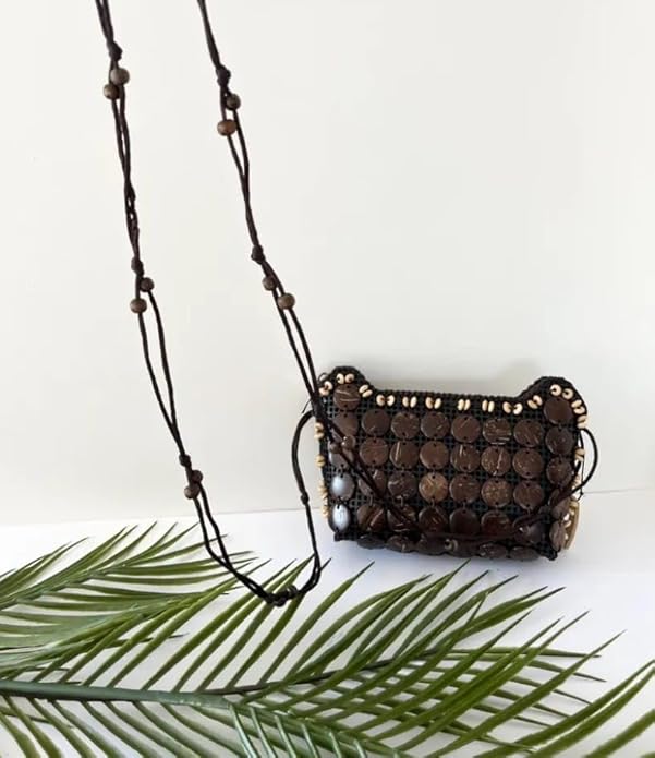 - Unique Artisanal Design: Each bag is handcrafted with genuine coconut shell beads, ensuring a one-of-a-kind accessory that stands out.