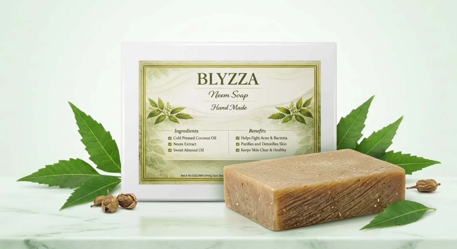 Experience the power of nature with our handcrafted neem soap, made using traditional cold-process methods to preserve nutrients and skin-loving properties.