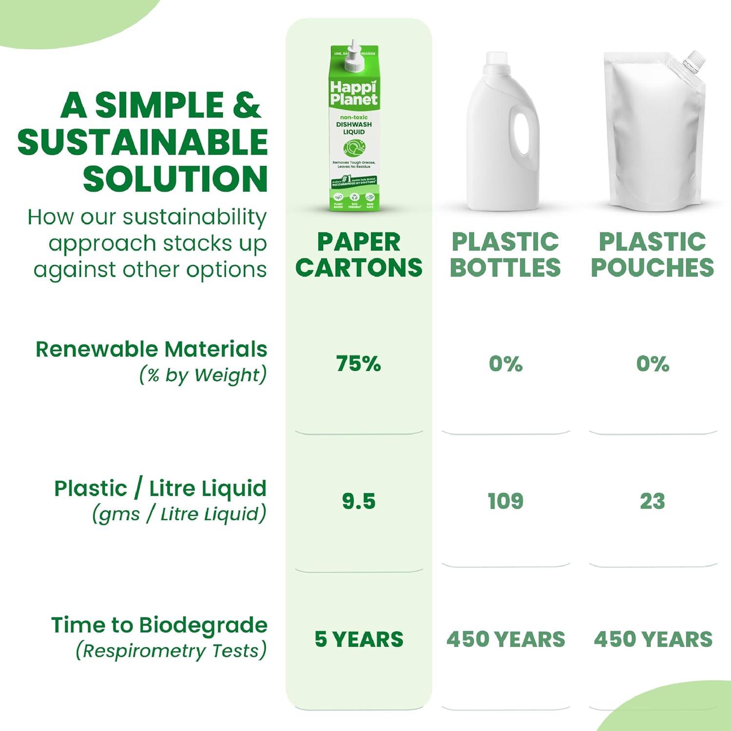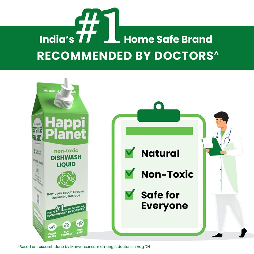 Happi Planet | Organic Dishwash Liquid Gel Refill Pack | 1L | Herbal, Natural, Plant Based, Biodegradable, Non Toxic, Eco-Friendly | Removes Tough Grease, Leaves No Residue, Baby & Pet Safe