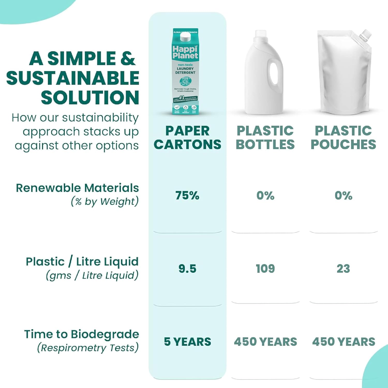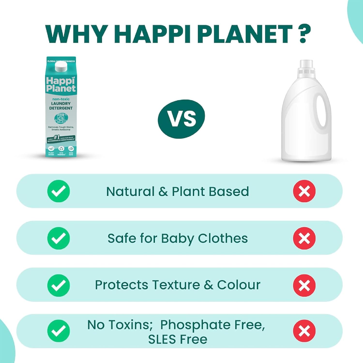 Happi Planet | Organic Laundry Liquid Detergent | 1L | Floral Mist Fragrance | Front Load & Top Load | Natural, Plant Based, Eco-Friendly, Herbal, Non-Toxic | Removes Stains & Odour, Protects Colour