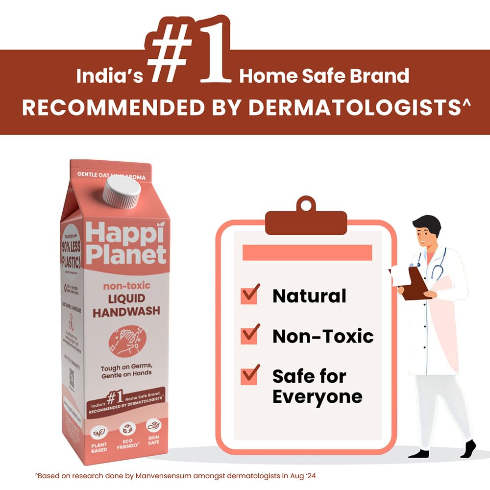 Happi Planet | Organic Liquid Handwash Refill | 1L | Oat Milk Fragrance | Moisturizing Hand Wash | Natural, Non-Toxic, Herbal, Eco-Friendly, Chemical Free, pH Balanced, Tough On Germs, Gentle On Hands