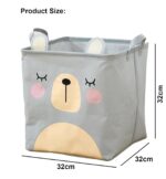 House of Quirk Cotton Linen Collapsible Square Storage Baskets Cute Kids Toys Storage Organiser for Laundry Basket Organizer Home, Bedroom, Dorm, Clothes (Grey)