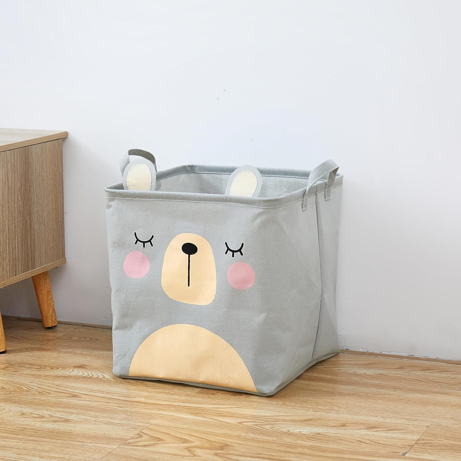 - Keep Shape – As far as a collapsible storage basket goes, the material request is fairly durable to keep the box shape standing up. Our collapsible storage box is made of cotton linen fabric which is hard enough to keep standing up even when a small basket is empty.