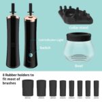 - Universal Compatibility: We understand that makeup enthusiasts have various brush sizes and styles. That’s why our cleaner includes eight rubber collars in different sizes, ensuring compatibility with most makeup brushes on the market. From large powder brushes to delicate eyeshadow brushes, our cleaner handles them all with ease.