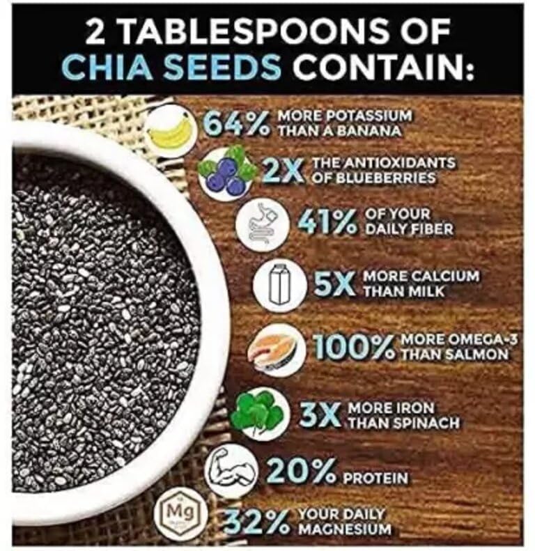 - chia seed is an excellent source of fibers, protein, omega3, vitamins& minerals. The product is non-perishable and does not expire