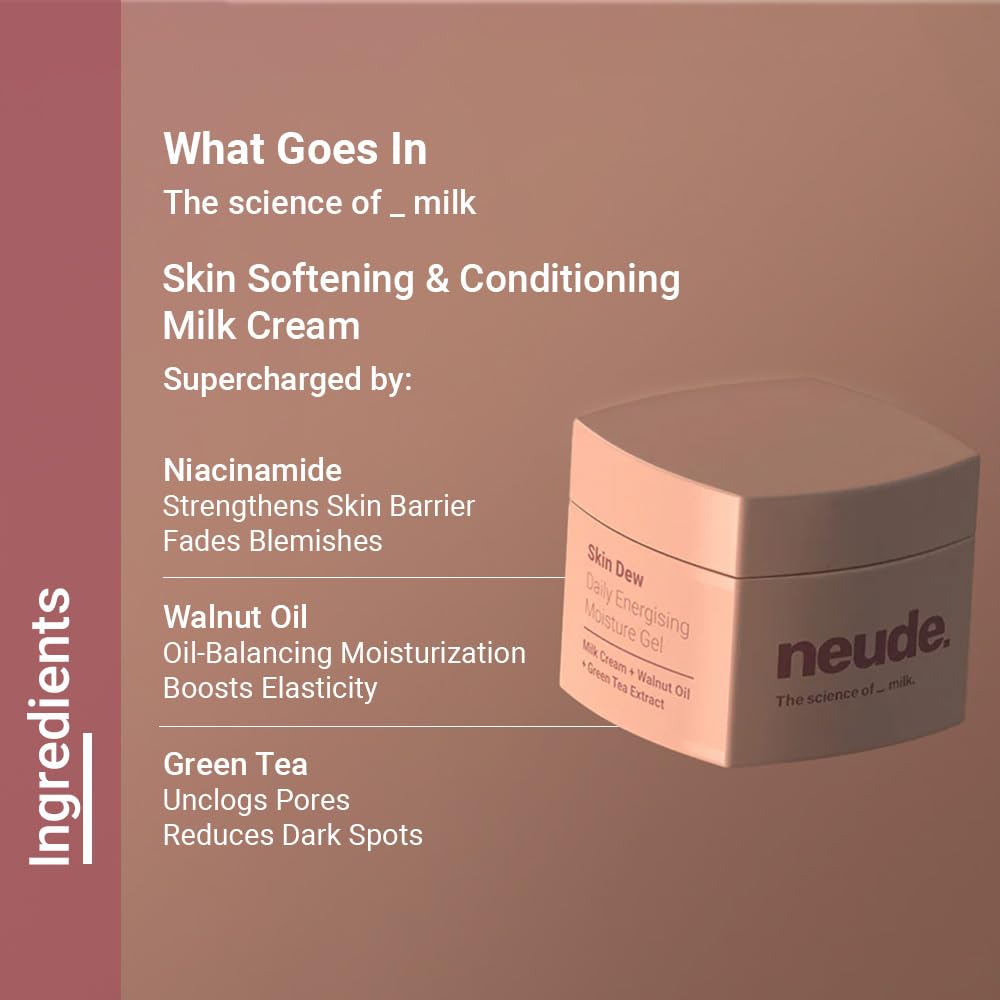 - SUPERCHARGED MILK CREAM: Skin Dew Face Moisturizer is a hydrating gel that has the goodness of Supercharged Milk Cream which helps soften the skin for a dewy glow, daily.