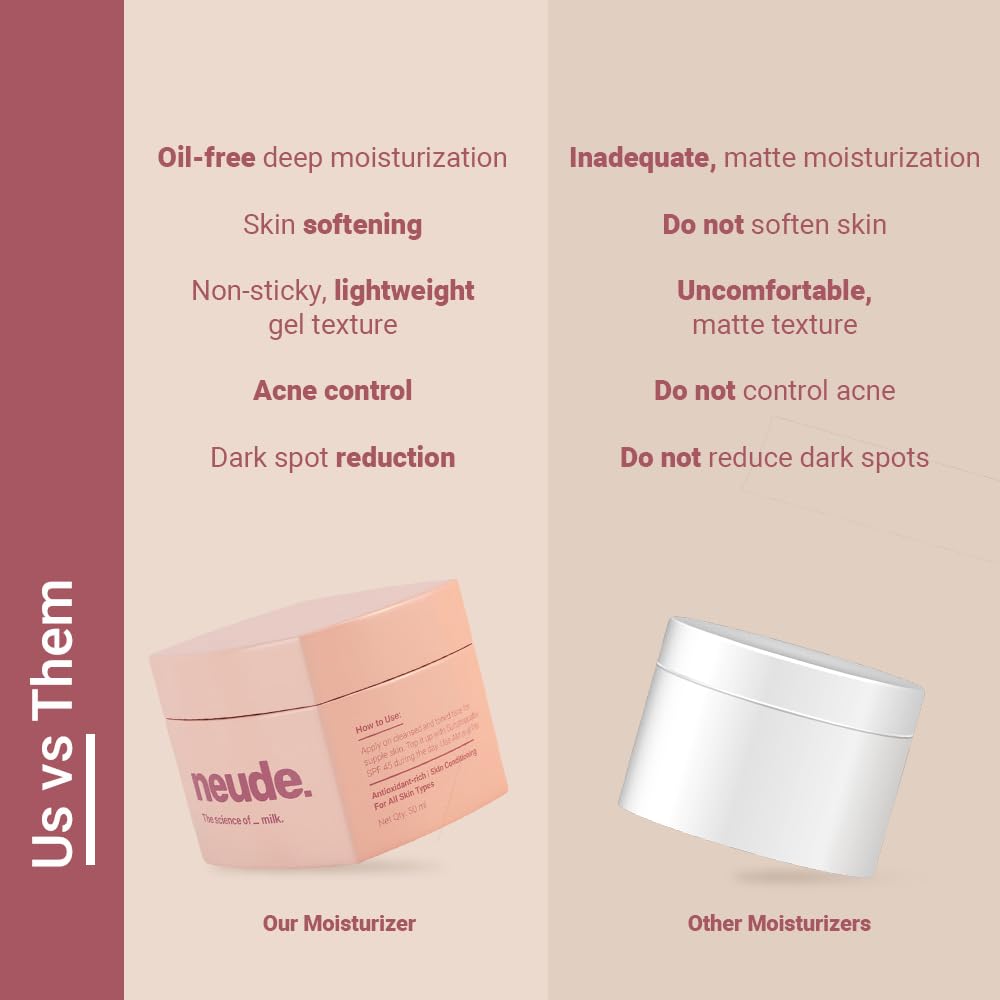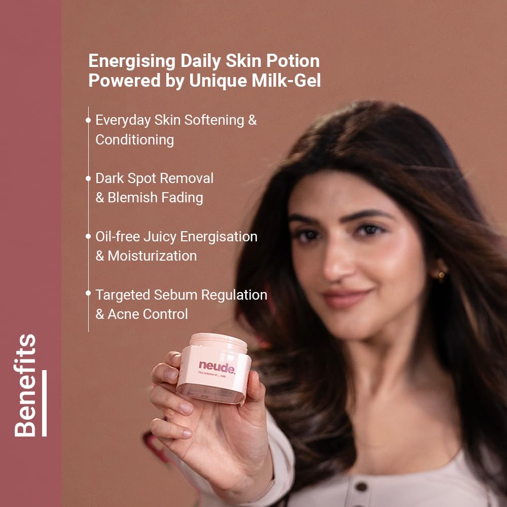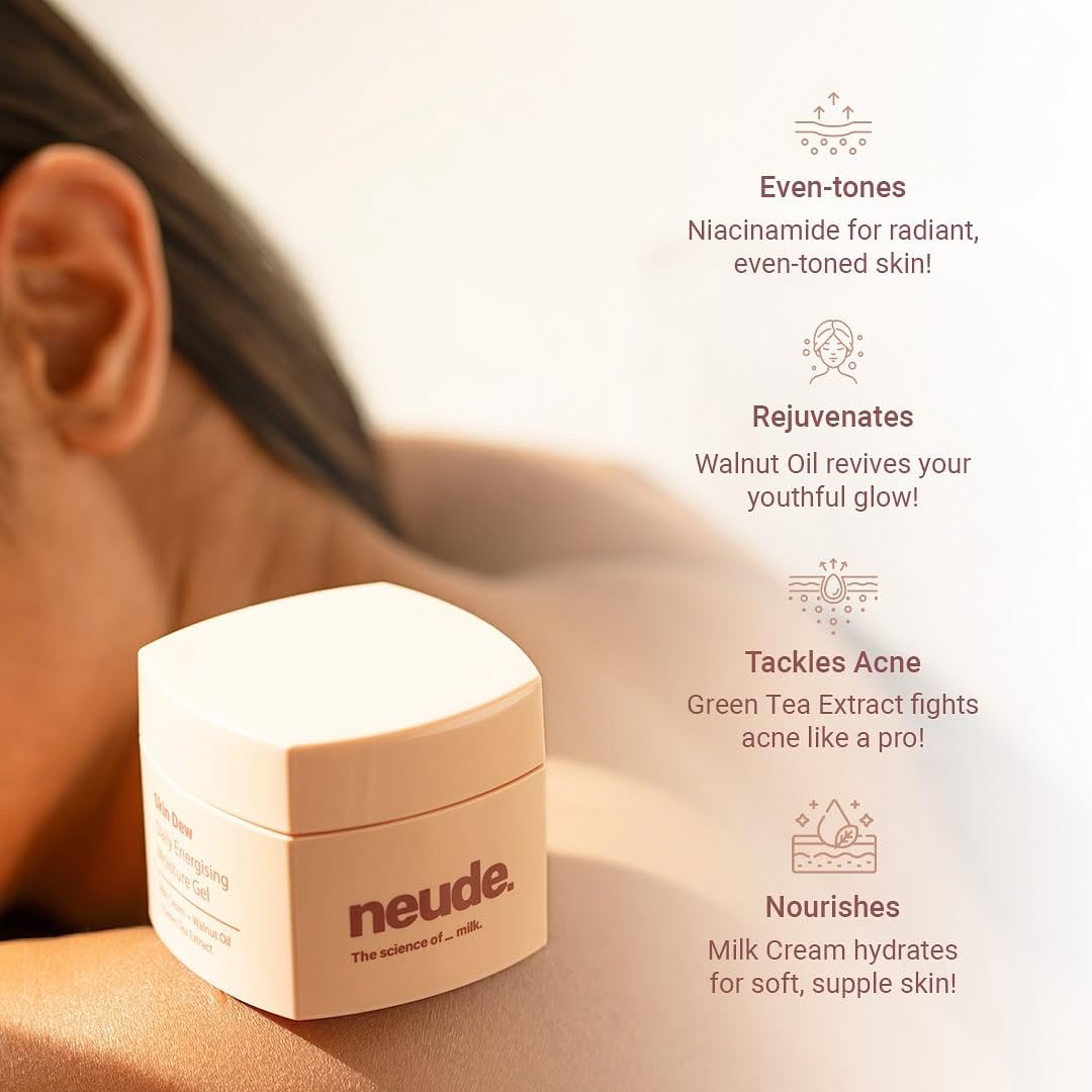 Neude Energising Daily Gel Face Moisturizer with Milk Cream, Niacinamide & Green Tea. Lightweight, Non-Sticky Hydrating Cream Skin Dew for Oily, Ance & All Skin Types, 50ml