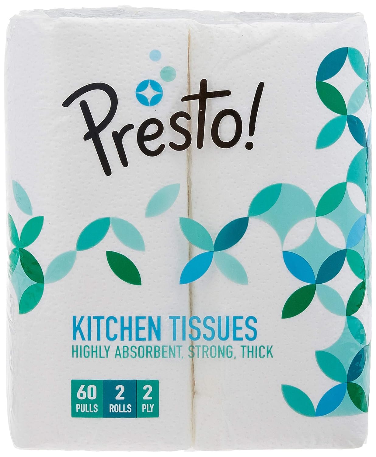 Presto! 2 Ply Kitchen Tissue Paper Roll | 240 Pulls | 60 Kitchen Towels X 4 Rolls