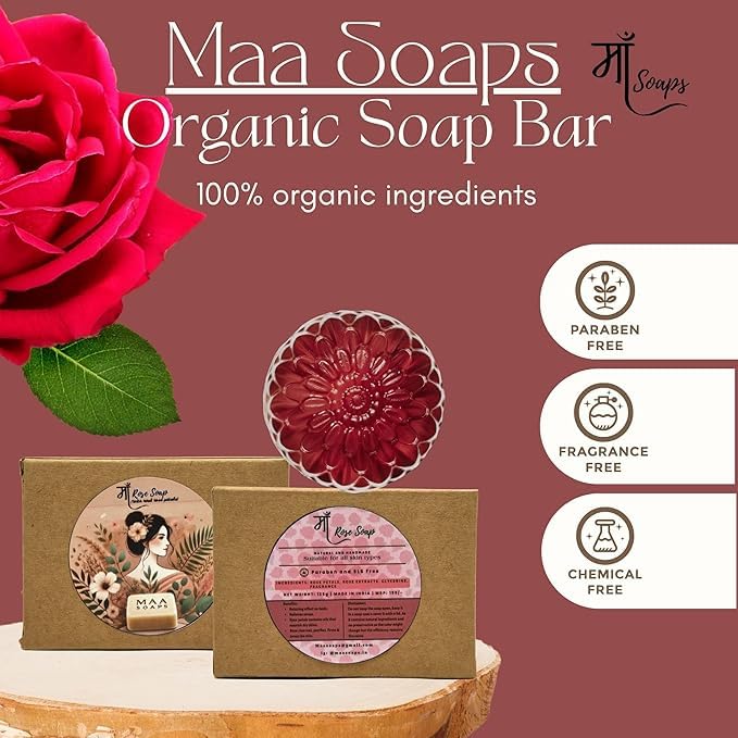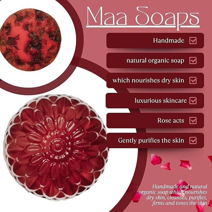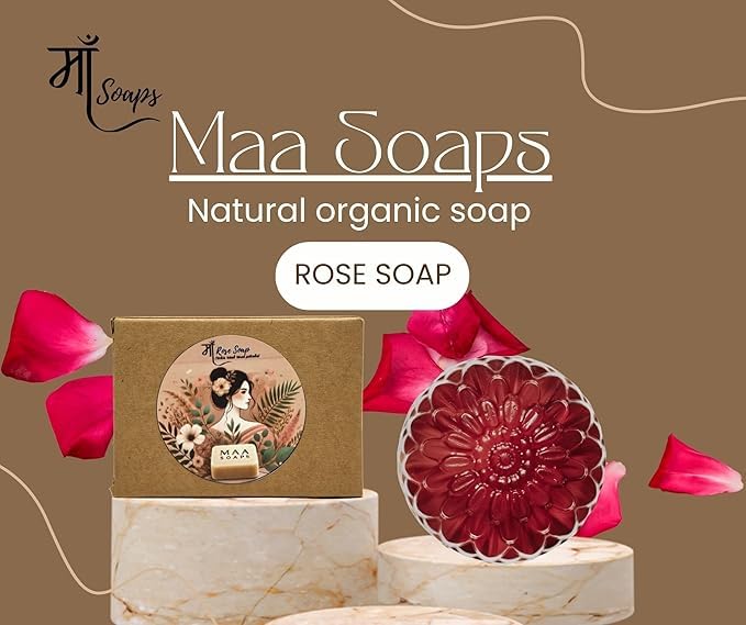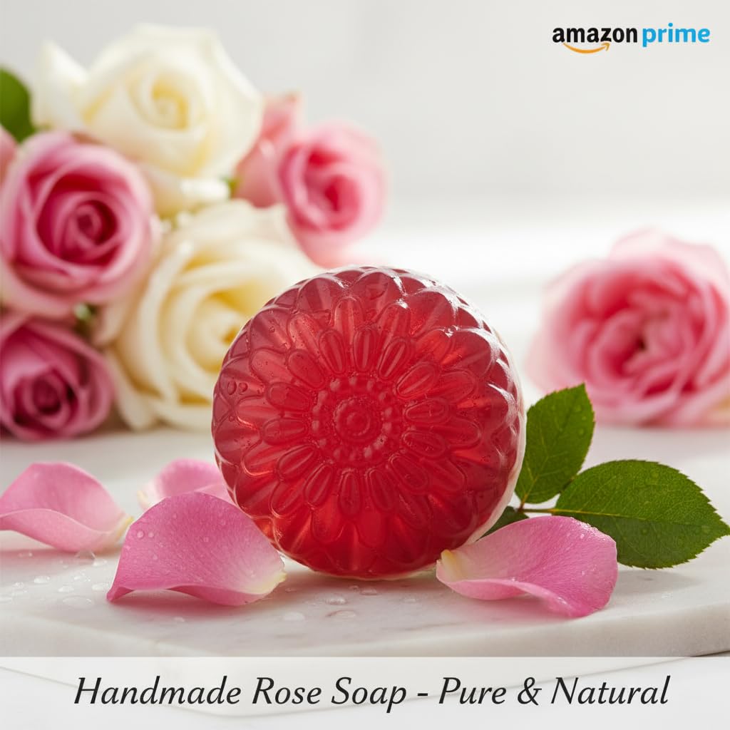 (Rose Soap) – Enriched with real rose petals | Handmade and natural organic soap which nourishes dry skin, cleanses, purifies, firms and tones the skin.(Pack of 1)