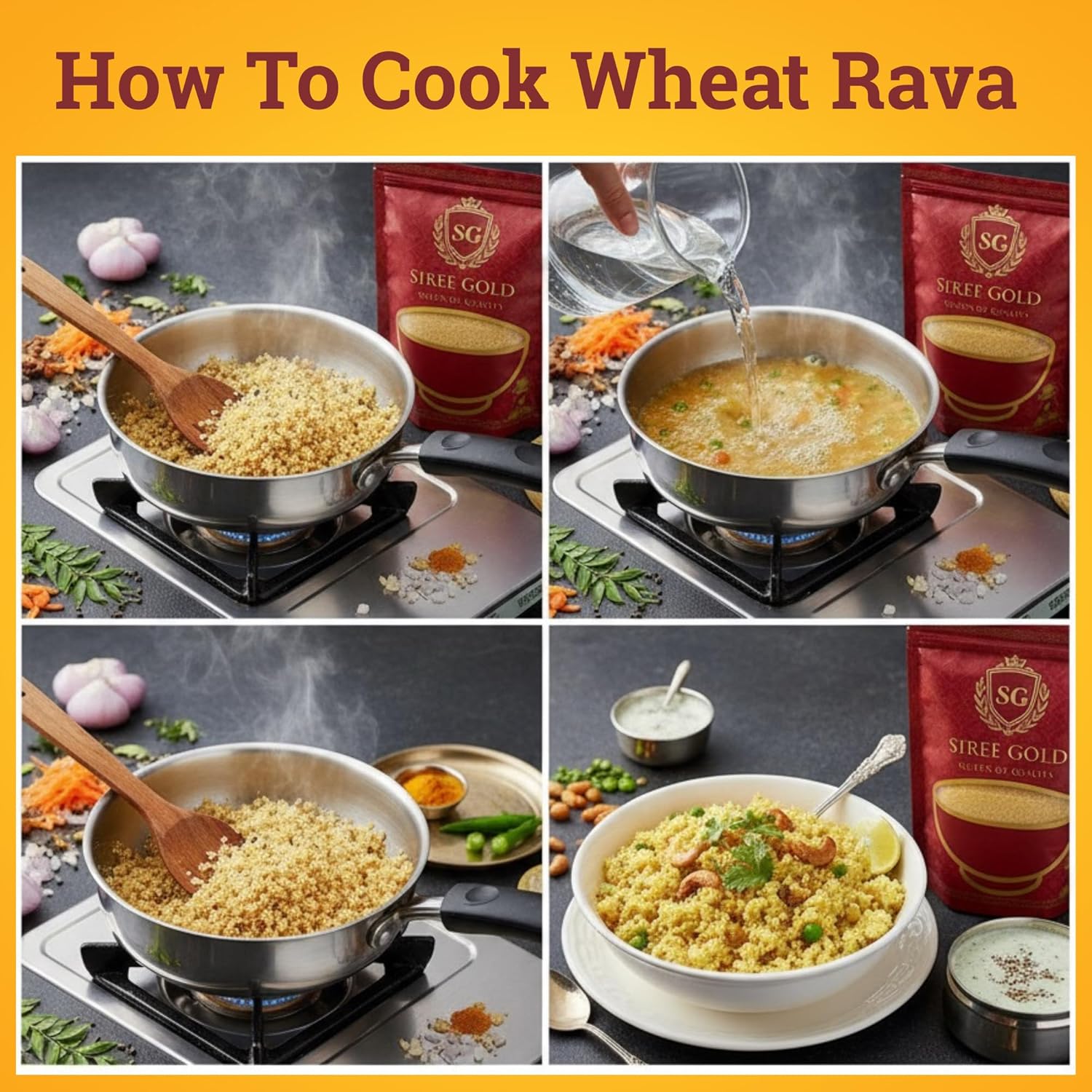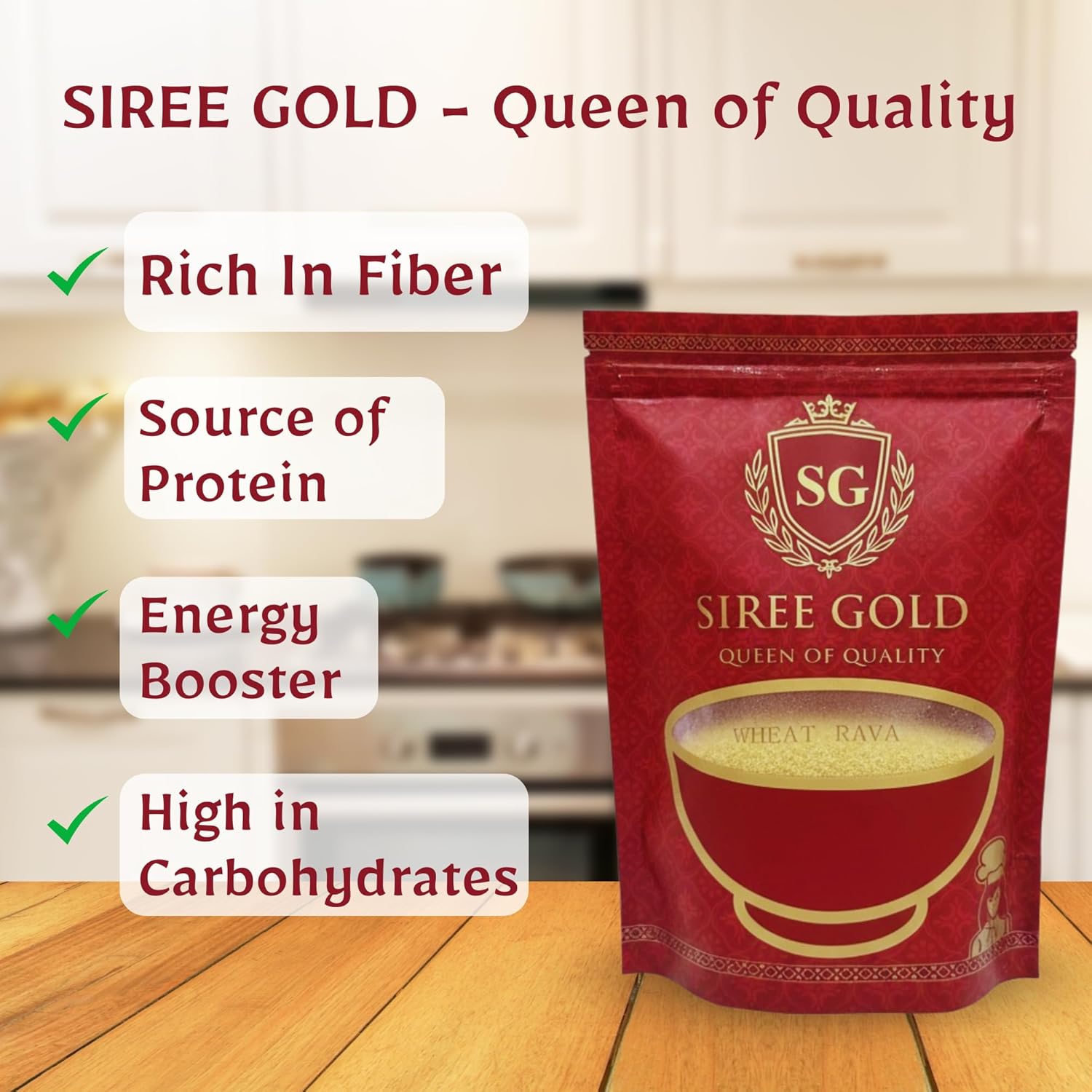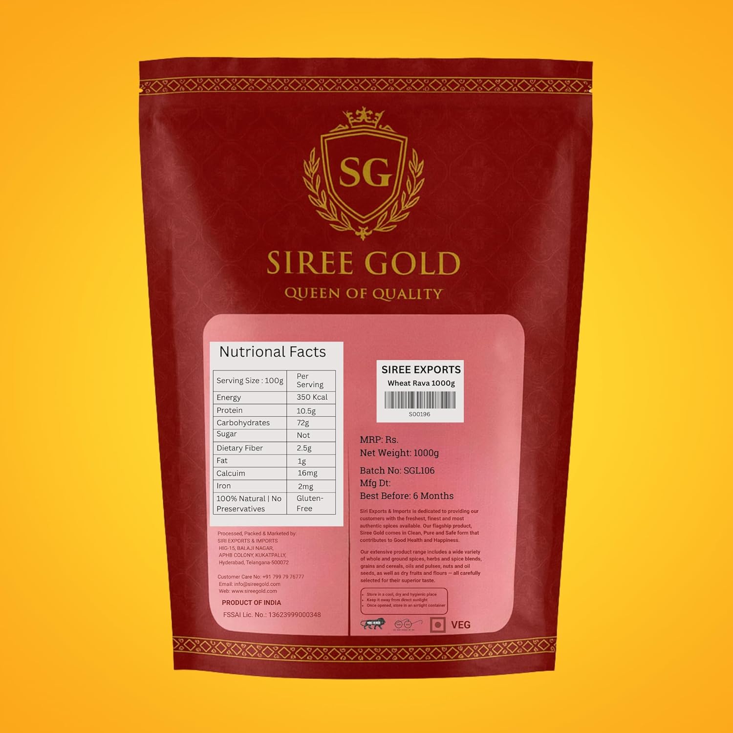 Siree Gold Premium Wheat Rava, Godhuma, Godhumai Rawa, Godhambu Rawa, Bansi rawa | Fresh & Pure Broken Wheat (Daliya) | Healthy & Nutritious Rava for Upma, Khichdi, Porridge & Daily Cooking (1kg)