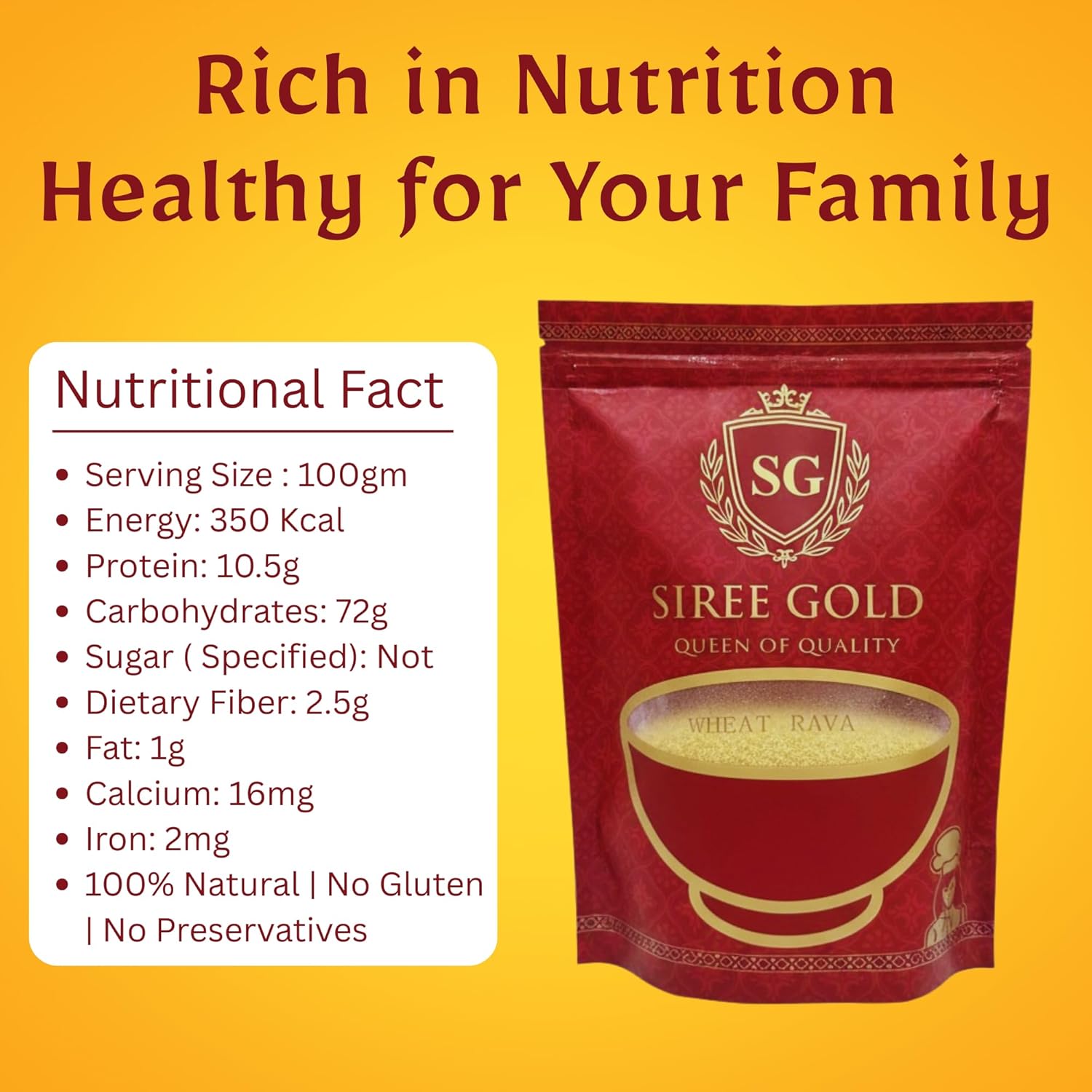 - 100% Natural: No preservatives, additives, or chemicals – pure and authentic wheat rava for your family.