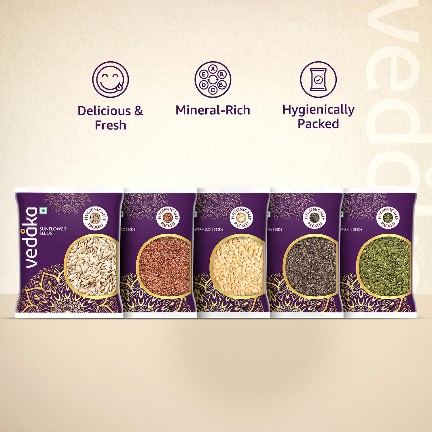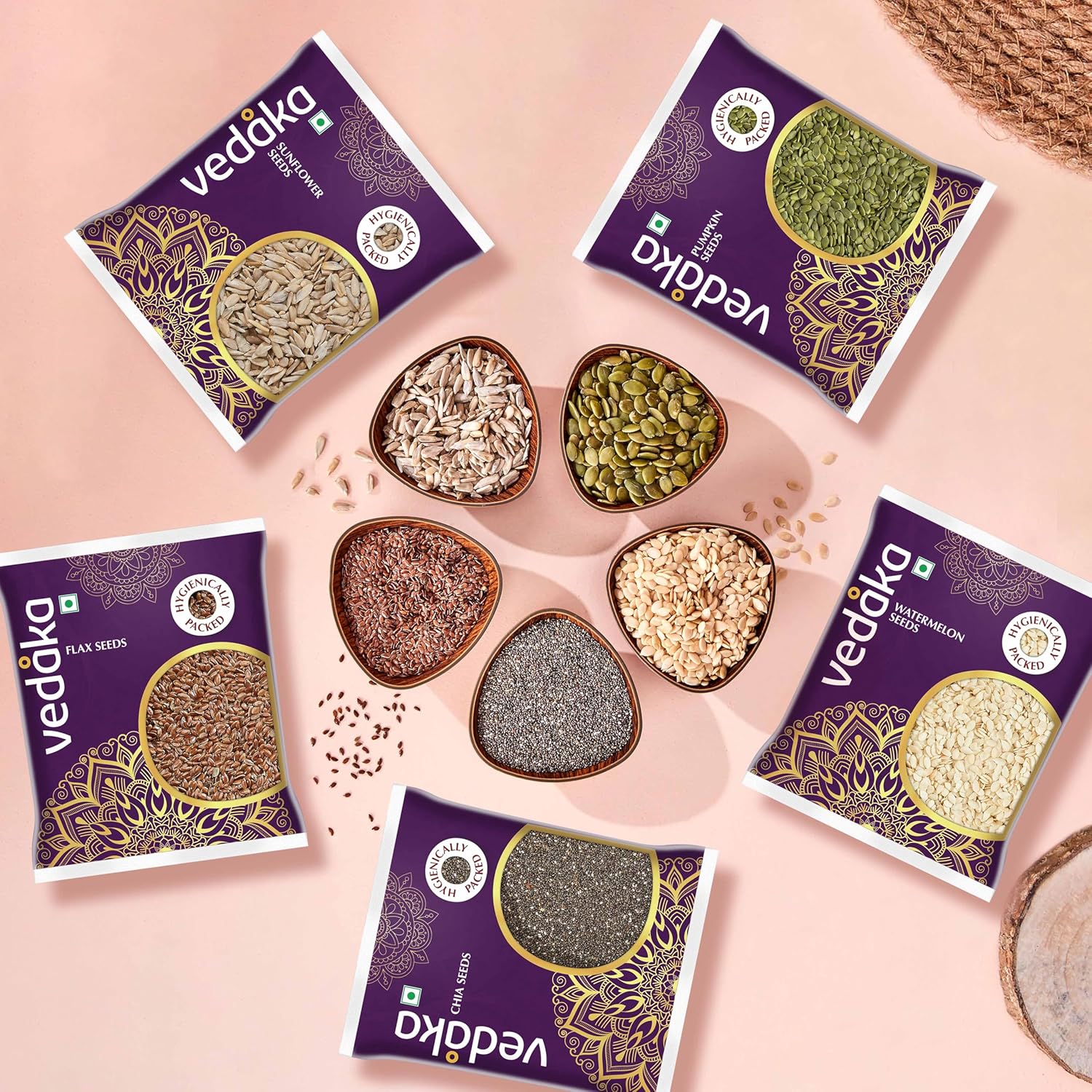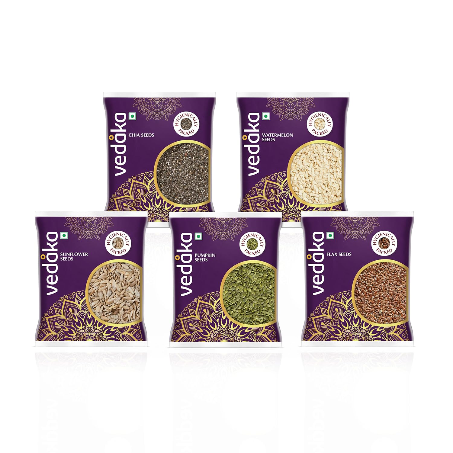 Vedaka Raw Seeds Combo | 500G | 100 G Each – Watermelon Seeds, Chia Seeds, Pumpkin Seeds, Flax Seeds, Sunflower Seeds