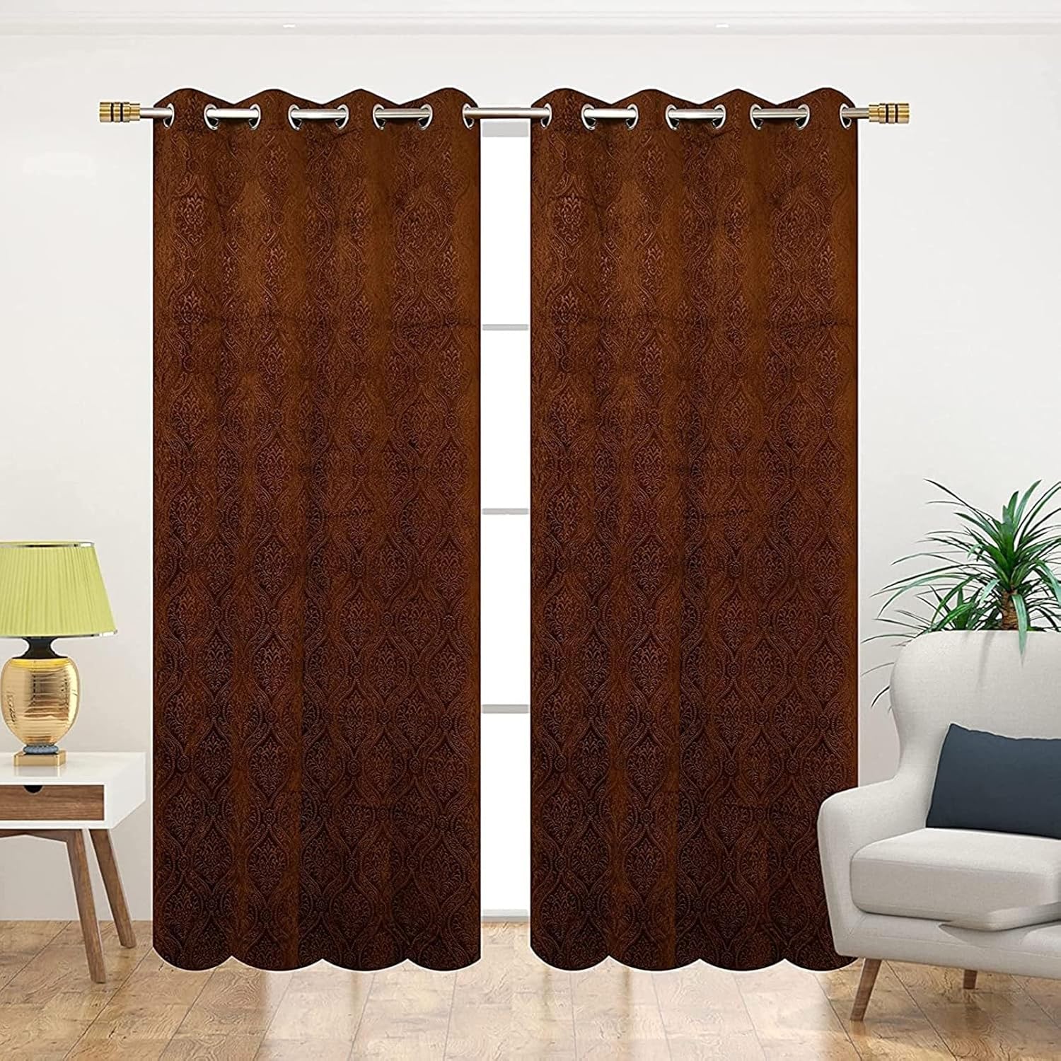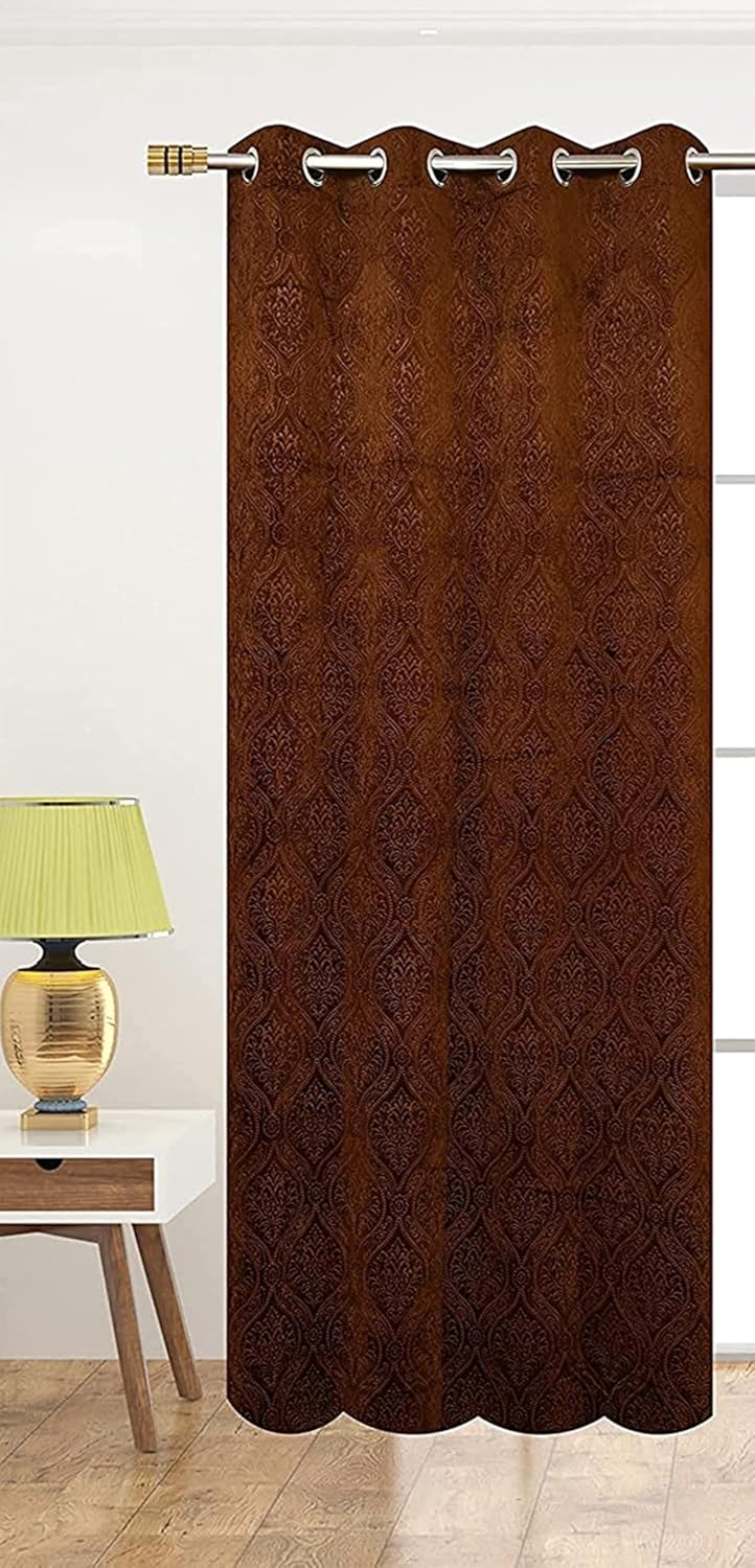 Velvet Curtain 7 Feet Long for Living Room – Door Curtain Set of 1 Pcs Panel, Velvet Curtain Blackout & Stylish Parda for Home Décor & Office Brown Colour