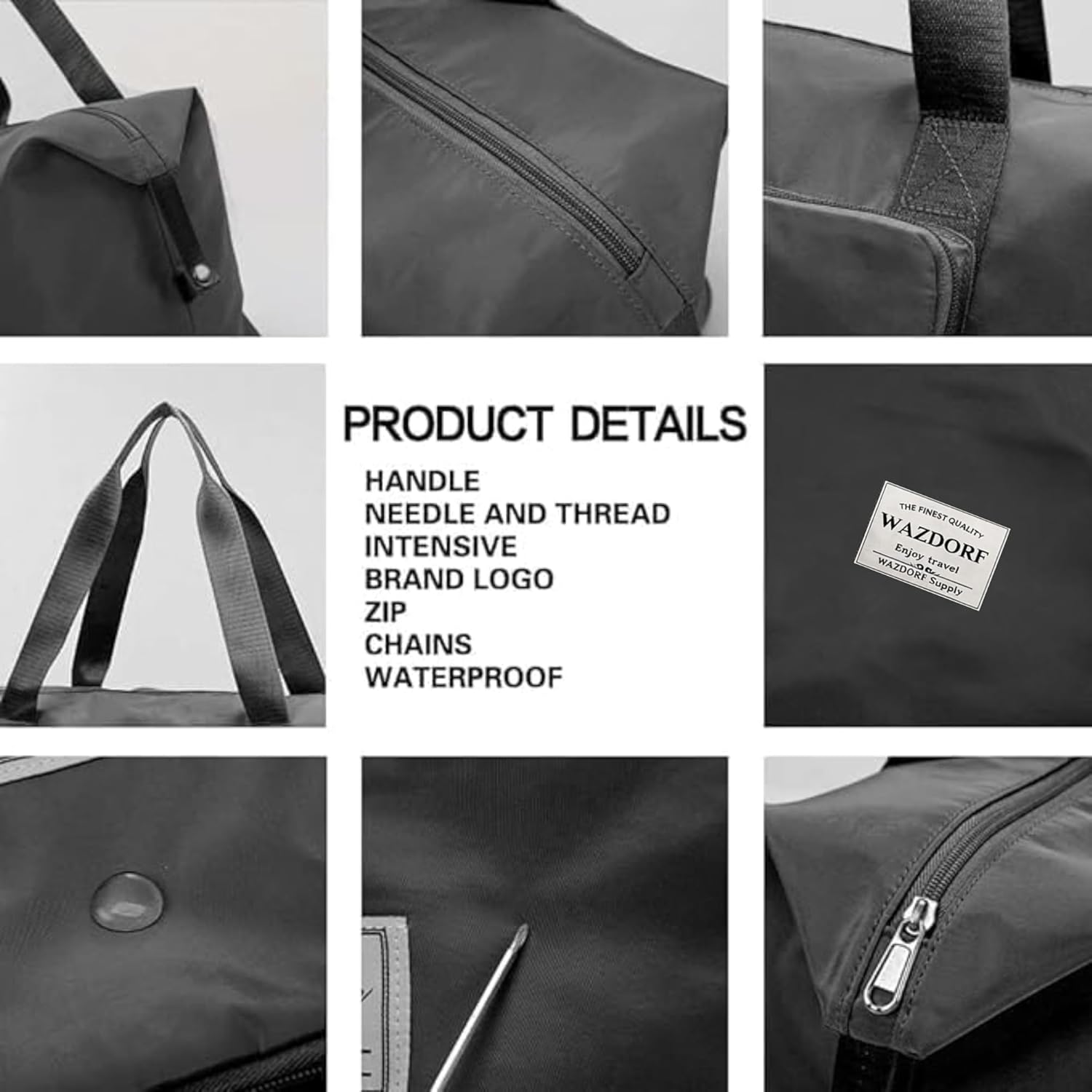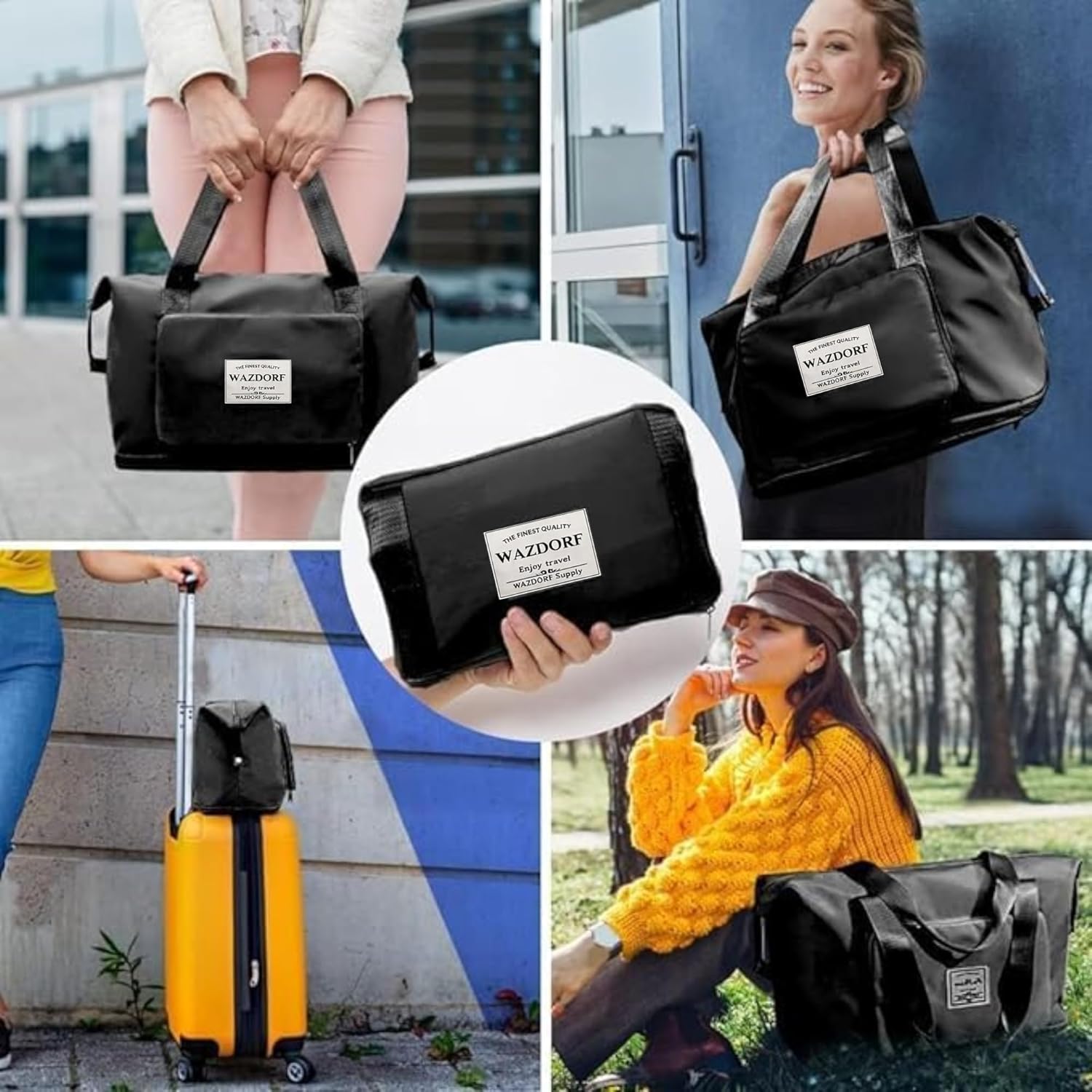 Wazdorf Nylon 41 Liter Expandable Travel Bags for Women, Duffle Bags for Women Luggage, Foldable Vanity Traveling Bag, Waterproof Hand Bag for Ladies Personal Items,Black