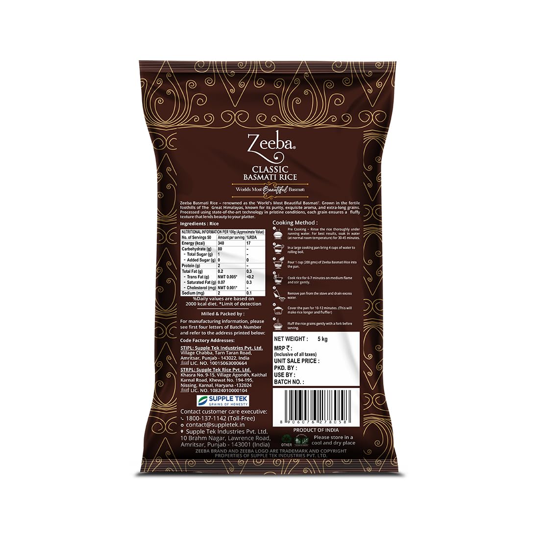 - Zeeba Classic Basmati Rice has a pleasing texture, exquisite aroma, and delicious taste. The Rice production team adopts all standards of Health & Safety measures to ensure customer safety.